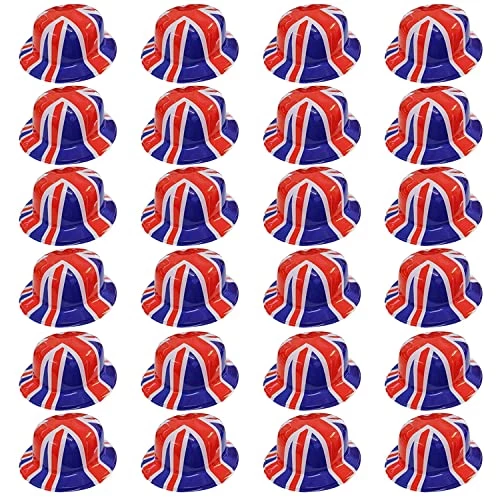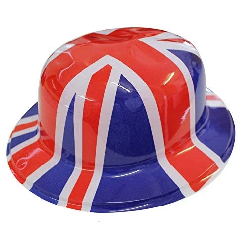 24X UNION JACK PLASTIC BOWLER HAT JUBILEE PARTY BRITISH FANCY DRESS MENS & LADIES