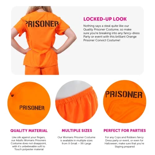 - SUPERB COSTUME QUALITY: Like silk against your fingers, our Ladies Prisoners Costume does not disappoint, with it’s unbelievable soft to touch polyester material, this Orange Prisoners Convict Costume is perfect for any Fancy-Dress Costume!