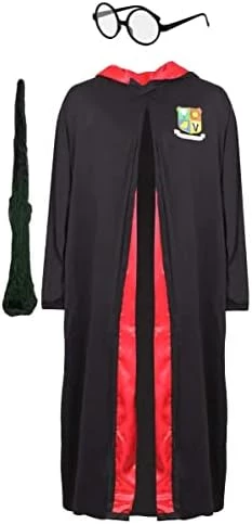 - COSTUME DETAILS: Your Adults Wizard costume includes a Black Robe with Red Lining & a printed School Badge, a pair of Black Round Glasses and a Brown Branch-Style Wizard Wand, a classic and iconic look for all young aspiring Wizards to wear proudly!