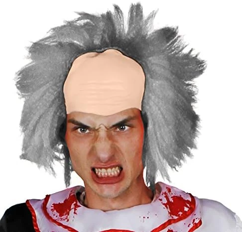 BALDING WIG FANCY DRESS ACCESSORY – RED HAIR ON BALD CAP STYLE WIG – CLOWN WIG, MAD SCIENTIST WIG PERFECT FOR HALLOWEEN FANCY DRESS – GREY HAIR