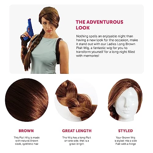Wig is suitable for adventure costume accessory and T.V and film themed parties and events. Wig gives a temple Raider look.