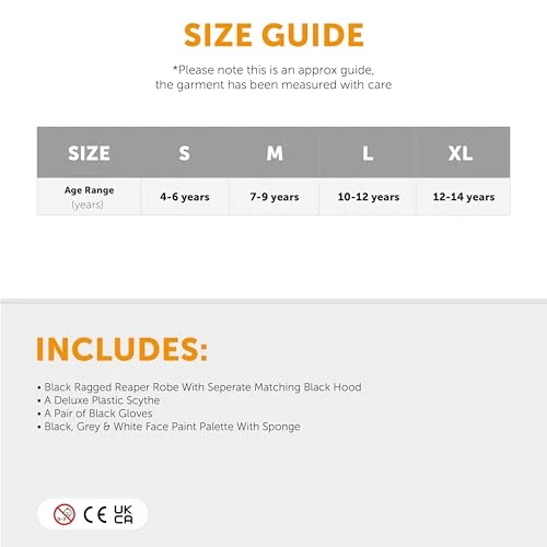 - AVAILABLE IN MULTIPLE SIZES: Your Childs Reaper Costumes are available in multiple sizes from Small to X-Large: Small – 4/6 Years – Medium – 7/9 Years – Large -10/12 Years – X-Large – 12/14 Years