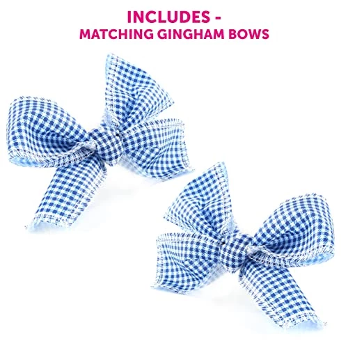 Girls Dorothy Costume – Kansas Girl Fancy Dress Costume for World Book Day / Book Week – Blue & White Gingham Dress + Matching Hair Ties