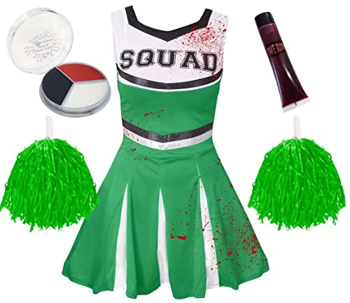 - GREEN ZOMBIE CHEERLEADER / HALLOWEEN CHEERLEADER FANCY DRESS COSTUME PERFECT FOR TRICK OR TREATING & HALLOWEEN PARTIES