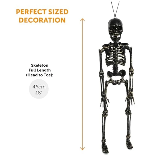 - GREAT SIZE: The Gold Hanging Skeleton is a great sized Halloween Prop measuring 46cm (18″) from head to toe, the perfect decoration to hang anywhere at your Halloween party or to simply get in the spooky spirit at home!