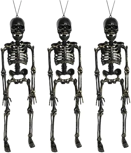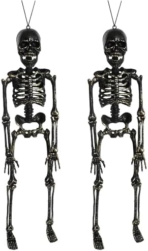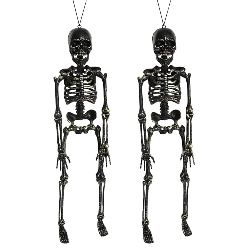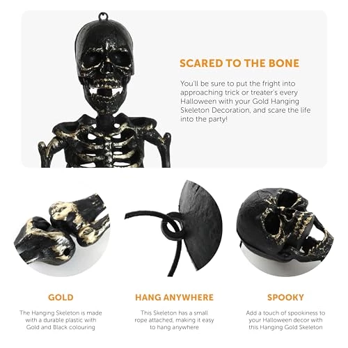 - SKELETON DETAILS: Your Hanging Skeleton Decoration is a Gold Skeleton with an easy hanging design, the Skeleton’s arms and legs have flexible joints allowing it to wriggle around as the decoration hangs to create a spooky Halloween display for your celebr