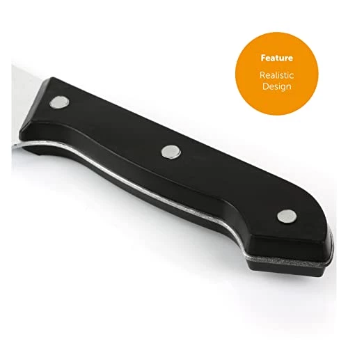 The knife looks realistic from a distance and it’s lightweight. The knife was delivered next day and my daughter is happy with it to go with her Halloween costumes.