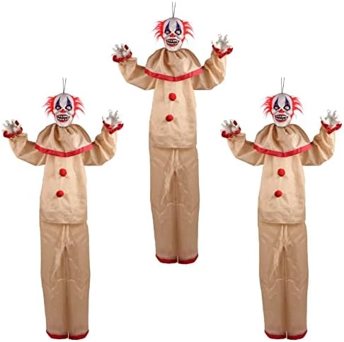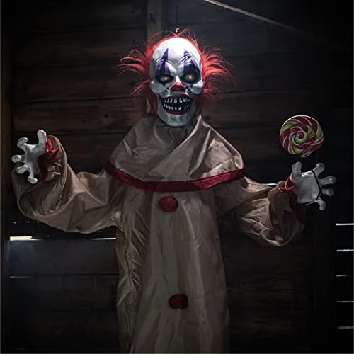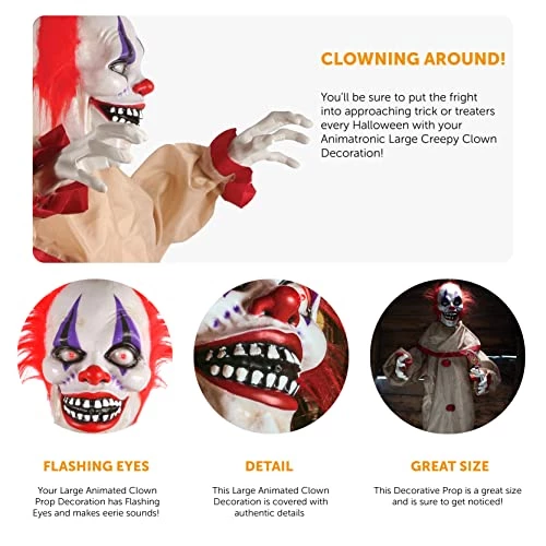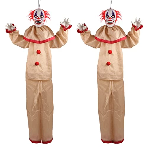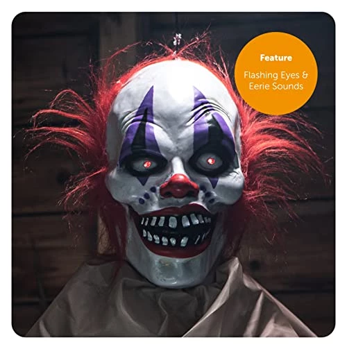 I LOVE FANCY DRESS LTD Animatronic Large Creepy Clown 160cm 63″ Halloween Decoration – Red Light Up Eyes & Sound Effects – Moving Arms – Halloween Props – Pack Of 2