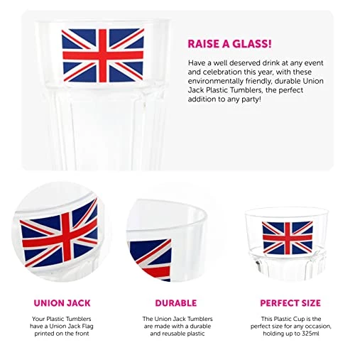 - AVAILABLE IN MULTIPLE PACK SIZES: These Union Jack Plastic Tumblers are available to buy in Packs of 12, or if you happen to be catering for more, there are also Packs of 24 and Packs of 144, for you to use among groups of family and friends!