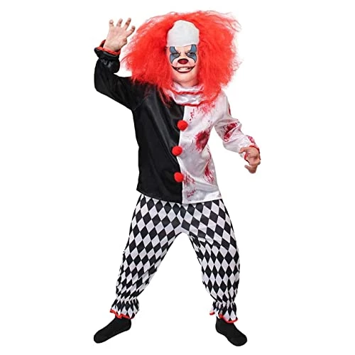 - COSTUME DETAILS: Your Childs Killer Clown Halloween Costume contains a Bloodstained Black and White Top & Checked Trousers, a perfect costume to get your children off to being a terror of the night!