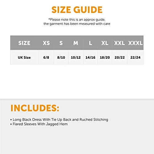 - AVAILABLE IN MULTIPLE SIZES: This Ladies Gothic Halloween Dress is available in multiple sizes from X-Small to XXX-Large: X-Small – UK 6/8 | Small – UK 8/10 | Medium – UK 10/12 | Large – UK 14/16 | X-Large – UK 18/20 | XX-Large – UK 20/22 | XXX-Large – UK 22/29