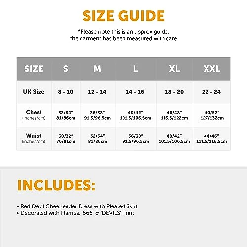 - AVAILABLE IN MULTIPLE SIZES: Your Ladies Devil Cheerleader Costume is available in multiple sizes from Small to XX-Large: Medium UK 8-10 – Chest: 84cm (33”) – Length: 78cm (31“)