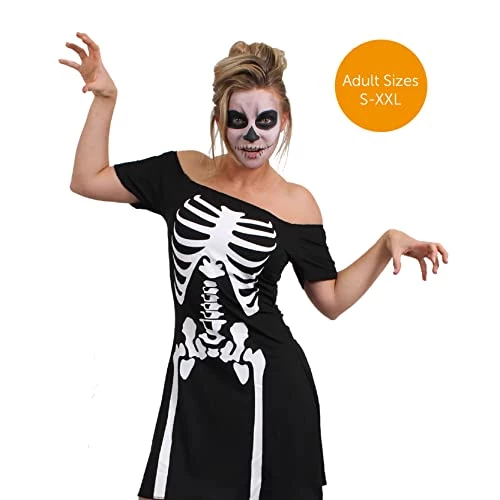 - AVAILABLE IN MULTIPLE SIZES: Your Ladies Skeleton Halloween Dress is available in multiple sizes from Small to XX-Large: X-Small (UK 6-8) – Chest: 30-32″/76-80cm, Waist: 26-28″/66-70cm, Full Length: 29″/74cm