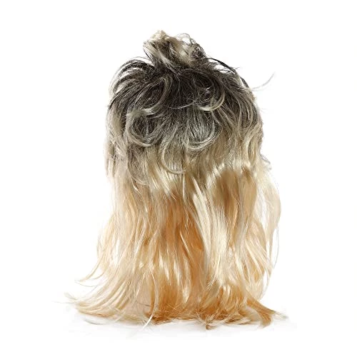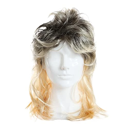 - Long Blonde Mullet Wig with Black Roots Detailing