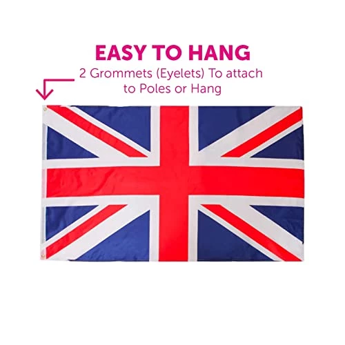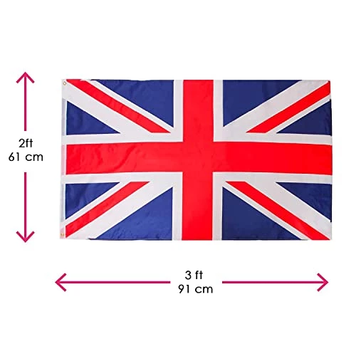- FLAG DIMENSIONS – 3 Foot x 2 Foot (91cm x 61cm) Union Jack flag with grommets (Eyelets) to attach to poles etc