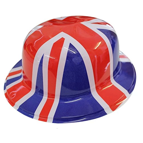 - PLASTIC BOWLER HAT WITH UNION JACK FLAG DESIGN