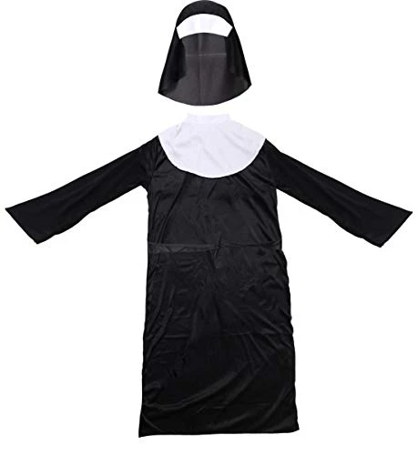 Recently turned old enough to go out and party on Halloween? Want to impress all the boys at school who ignored you for years? Want to get away with looking a little promiscuous without compromising your christianity? Then look no further. This nun’s habit will allow you to look like a nun in a habit. Impress men with your humour and mind, not the same cat outfit you and 458934759 of your friends are all wearing. And after all, theres nothing more sexy than a pair of black plimsoles which are the obvious choice to go with this attire. Go on sister, do the right thing.
