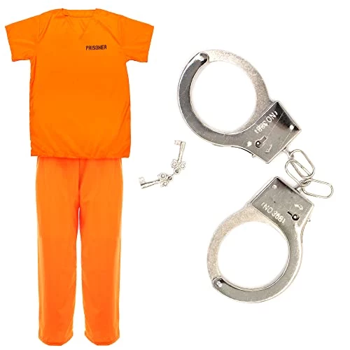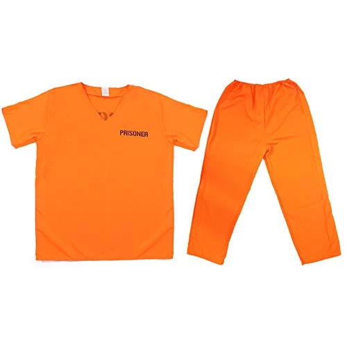 - COSTUME INCLUDES: This Womans Prisoner Costume includes an Orange Prisoner Convict Top with ‘PRISONER’ print on front and back, matching Orange Trousers with an Elasticated Waistband, and prop Handcuffs!